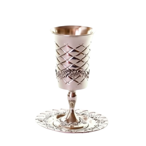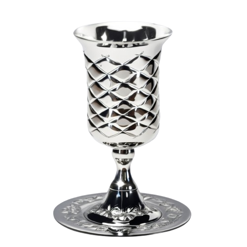 גביע קידוש מוכסף על רגל עם תחתית תואמת - דגם כריות