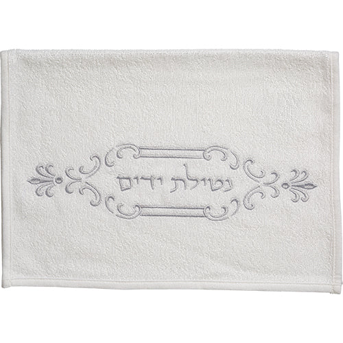 זוג מגבות לבנות עם ריקמה "נטילת ידיים"-מגבות מהודרות-ART JUDAICA-סופר הום