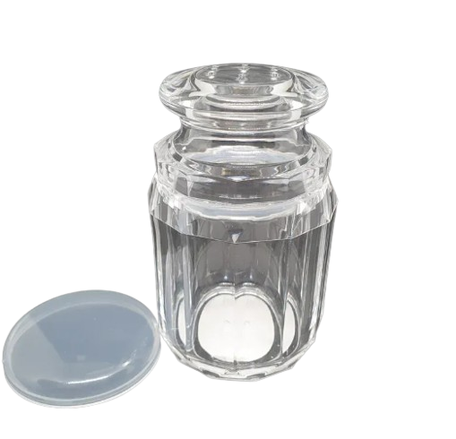 מלחייה מעוצבת עשויה אקריליק איכותי דמוי קריסטל, מוסיפה אלגנטיות לשולחן.