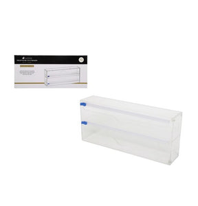 מתקן איכותי ושקוף לאחסון ושימוש נוח בנייר כסף וניילון נצמד. עוזר לשמור על סדר במטבח ולחתוך בקלות את הגלילים ללא הסתבכות.