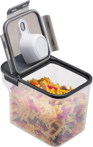 תיאור: קופסת אחסון 5 ליטר עם ידית ופתח נוח במכסה. מתאימה לקמח, אורז, מזון לבע"ח ועוד. אטימה הרמטית לשמירת טריות.
