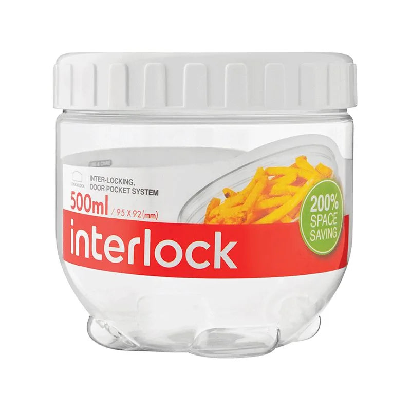 תיאור: קופסת אחסון עגולה 500 מ"ל עם מכסה לבן מסדרת אינטרלוק של LOCK&LOCK. ניתנת לחיבור לקופסאות אינטרלוק אחרות. אטימה הרמטית.