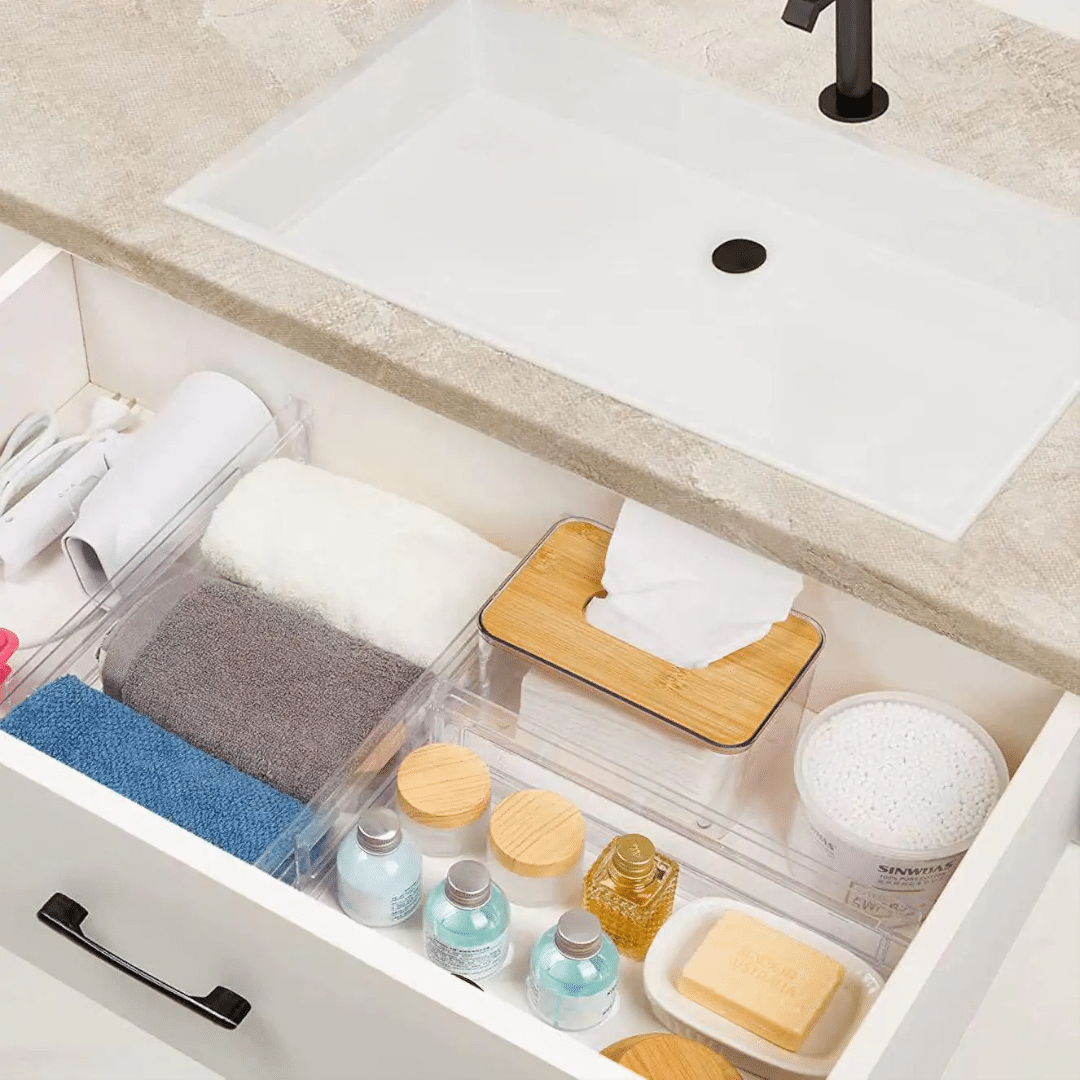 זוג מחלקי מגירות אקריליים שקופים שיעשו לכם סדר במגירות.
