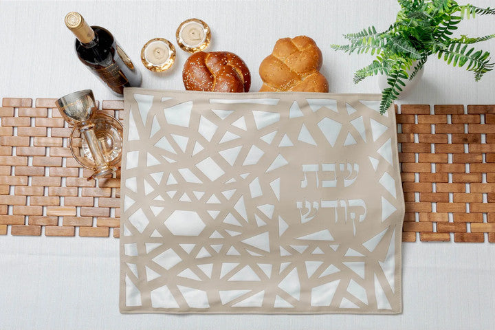 כיסוי חלה מרהיב לשולחן שבת וחג, עשוי מבד איכותי ומעוצב בטכניקה מיוחדת. מושלם לשבתות ולחגים, מעניק יופי לשולחן החג שלכם.