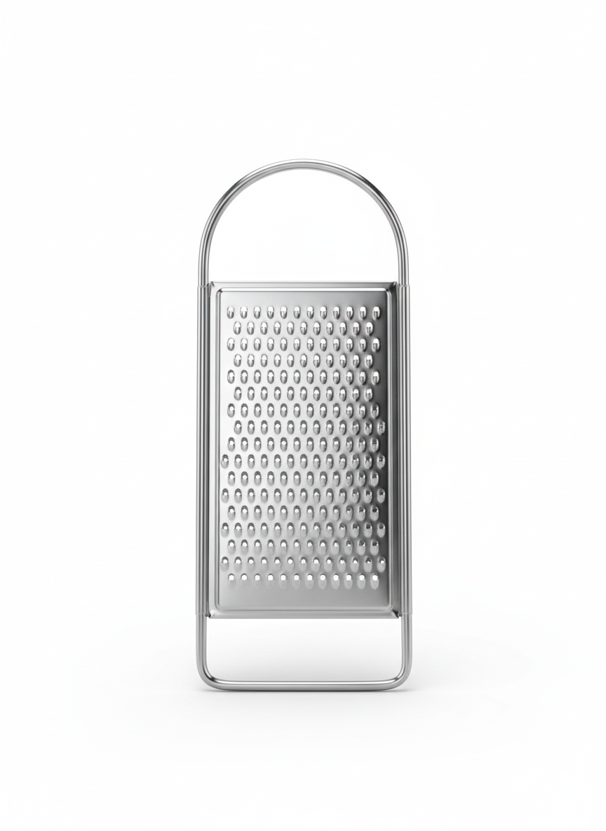 מגרדת שטוחה חזקה ונוחה לאחיזה ולהנחה מעל קרש או קערה.