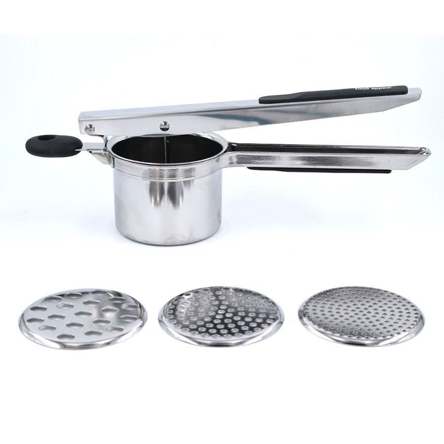 מועך ירקות בלחיצה כולל 3 דיסקיות - נירוסטה