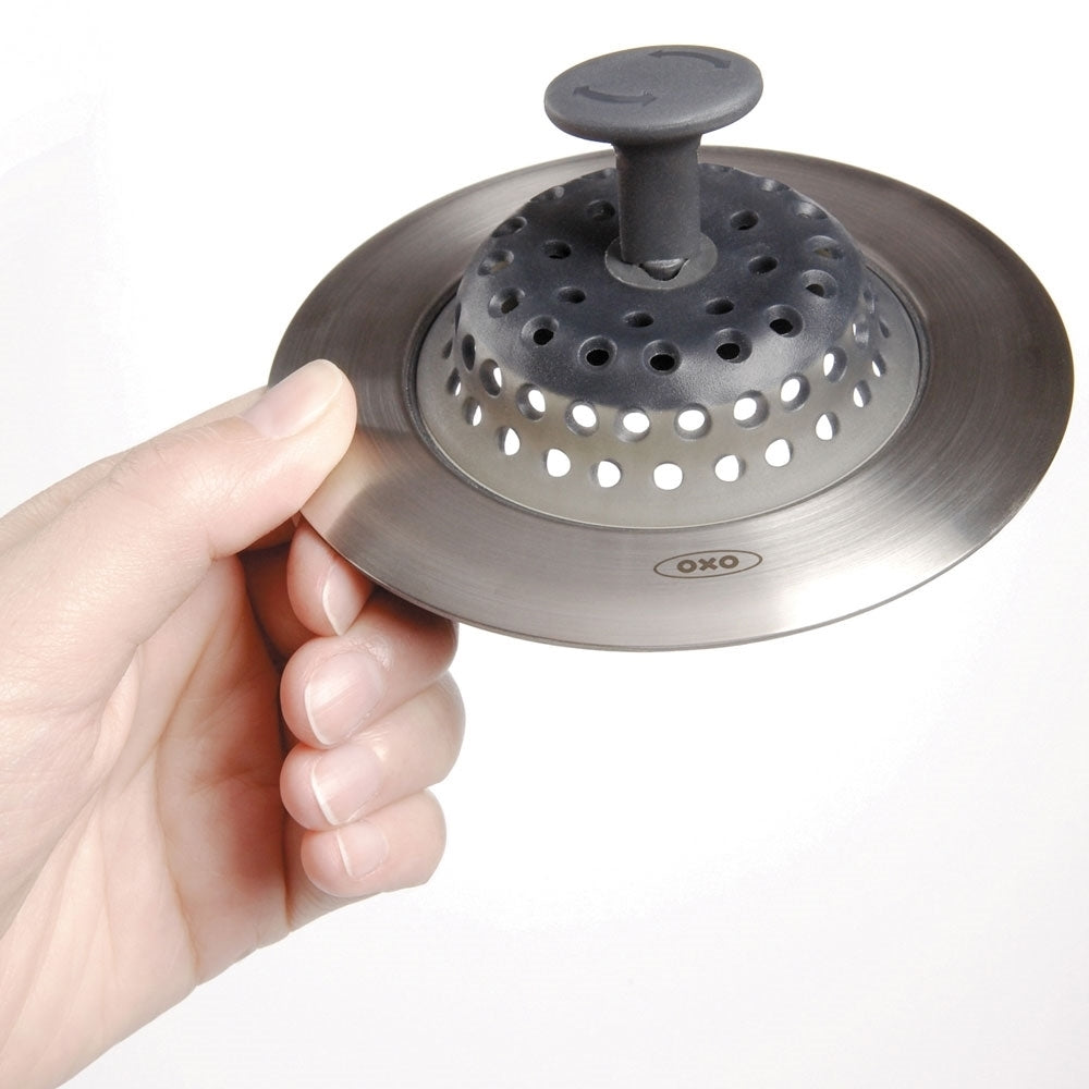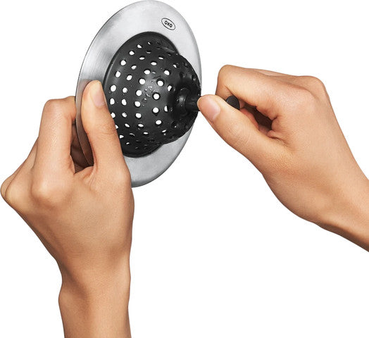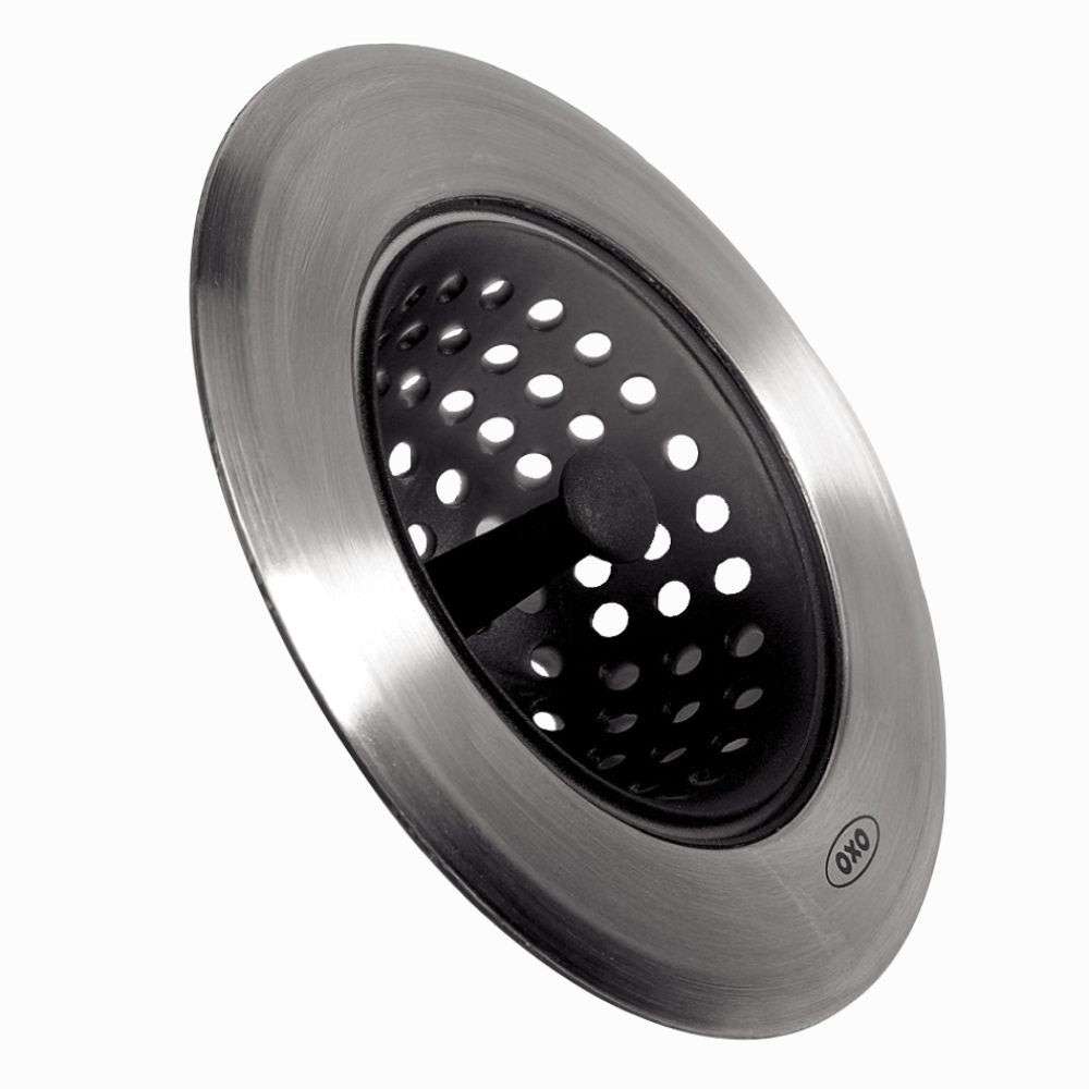 מסננת הכיור האיכותית מבית OXO מאפשרת ריקון קל ונוח של שאריות מזון מבלי שתצטרכו לגעת בהן עם הידיים.