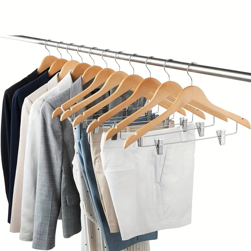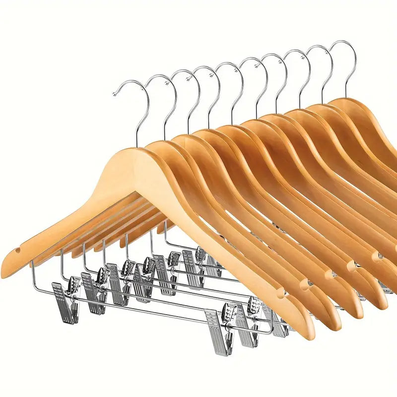 סט 3 קולבי עץ עם קליפסים מתכווננים