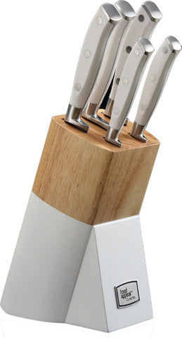בלוק סכינים 6 חלקים הכולל 5 סכינים + מעמד - גימור שחור\לבן CLASSIC